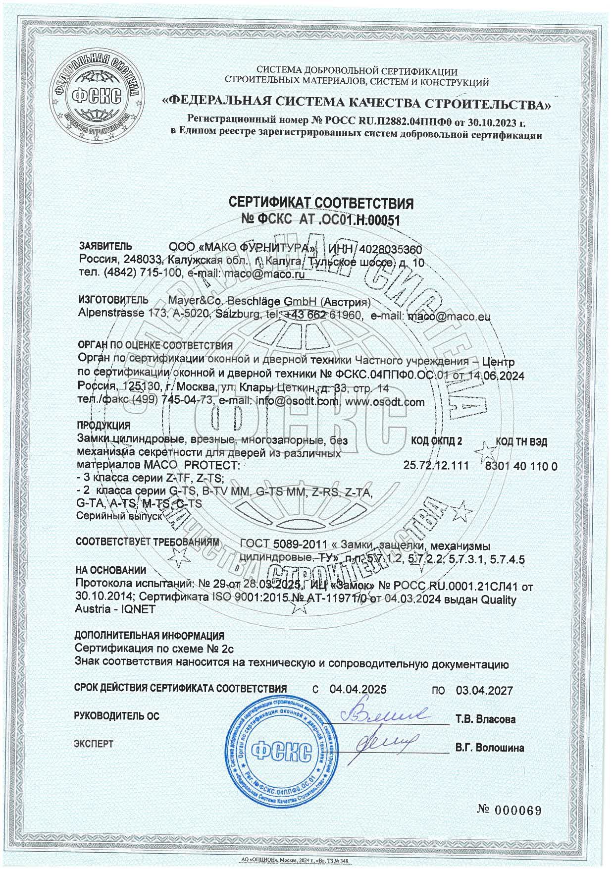 Сертификат соответствия на профиль Blaugelb EPS Triotherm+